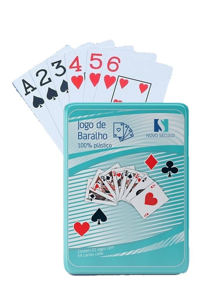 Baralho Duplo 100% Plástico C/ 108 Cartas À Prova Dágua Lata