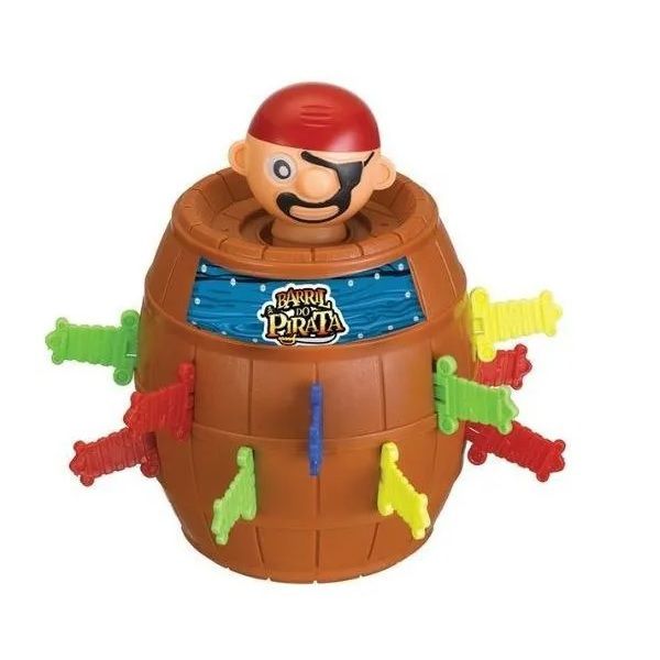 O jogo consiste em introduzir uma espada dentro do barril e não fazer com que o pirata que está dentro dele acabe pulando. Ganha quem não o fizer pular. Divirta-se.