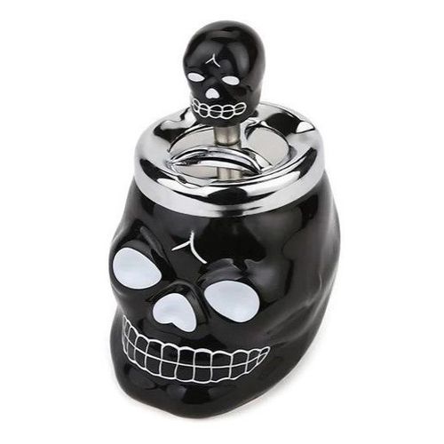 Cinzeiro super criativo em formato de caveira na cor preta.