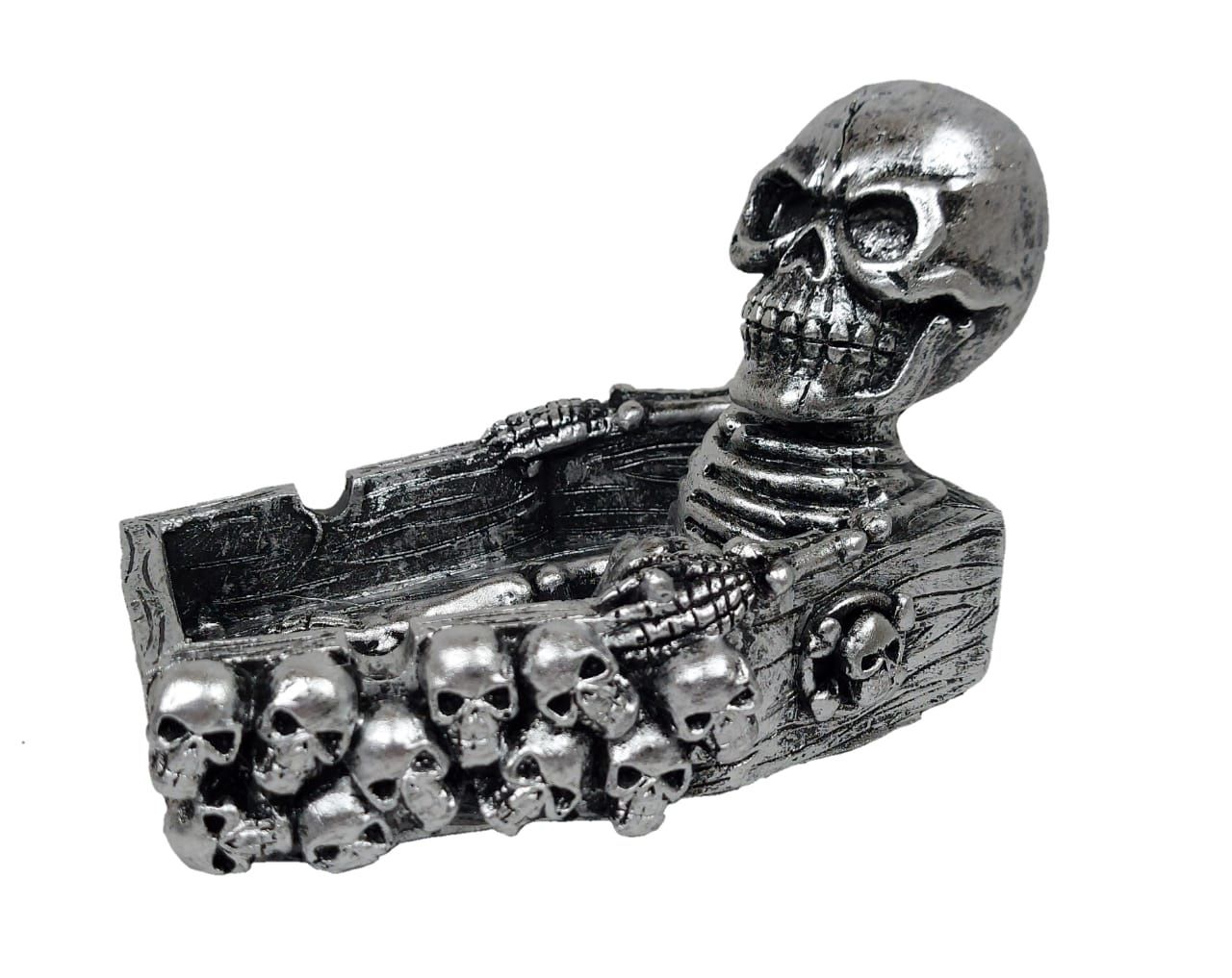 Cinzeiro em formato de esqueleto / caveira sentada confeccionado em resina para decorar o seu ambiente!