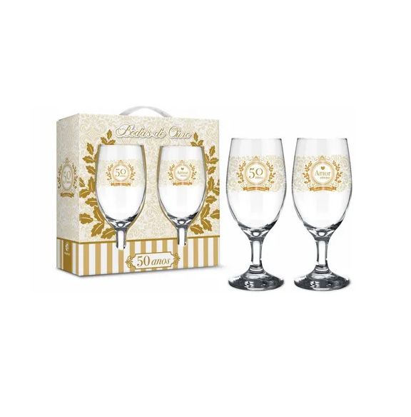 Presenteie aquele super casal que está celebrando Bodas de Ouro com esse incrível Conjunto de Taças para que eles possam brindar esse momento tão especial.