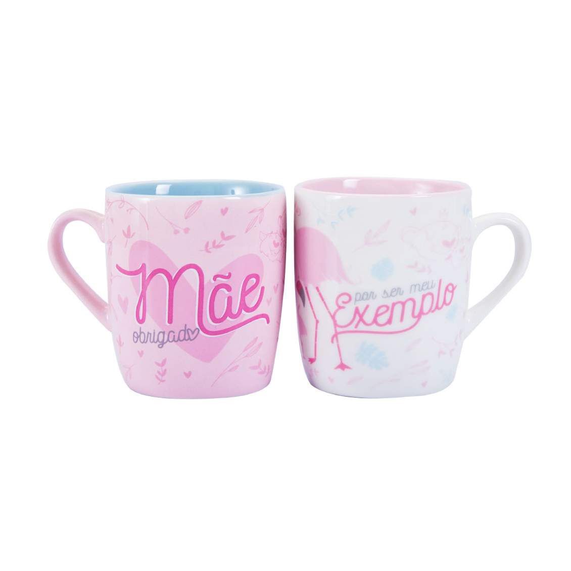Todo o dia é dia de homenagear as mães. Com o conjunto duplo de canecas obrigado mãe, você pode