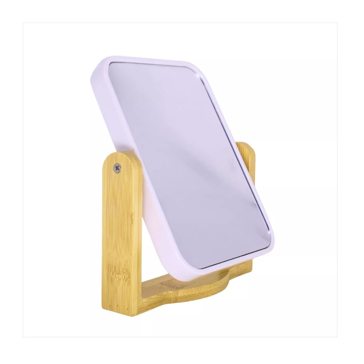 O espelho possui estrutura em bambu que confere resistência e durabilidade. Você pode posicioná-lo da forma que achar mais confortável, seja para barbear, maquiar ou modelar sobrancelhas.