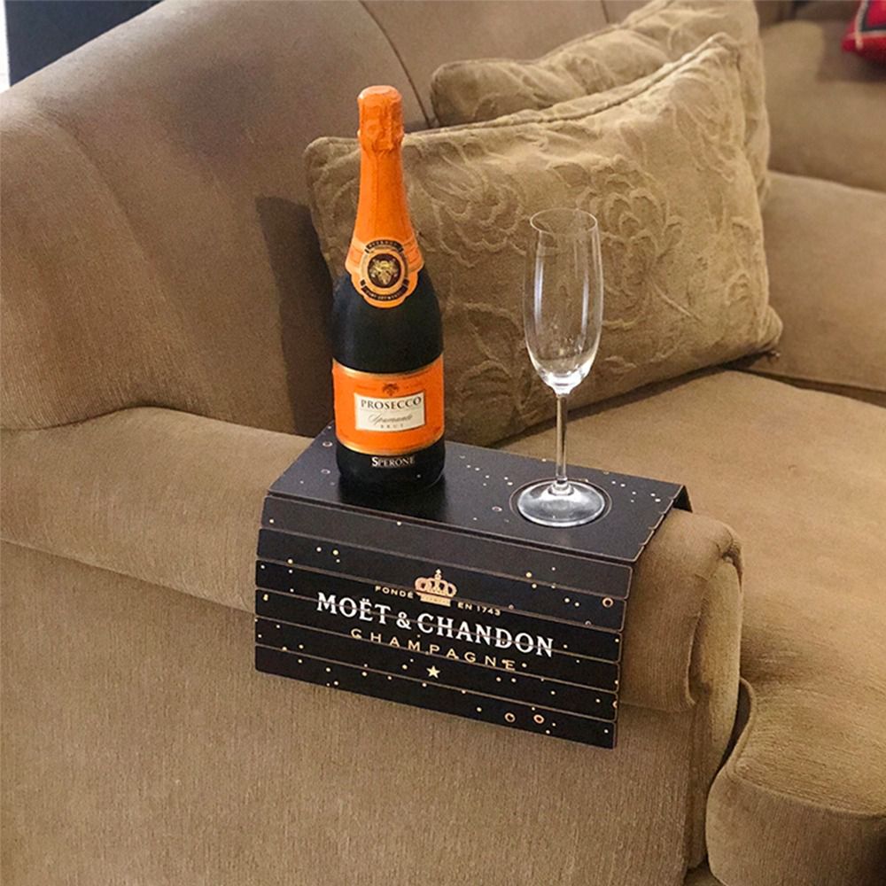 Bandeja Esteira Braço Sofá Flexível Com Porta Copos Madeira - Champagne Moët & Chandon