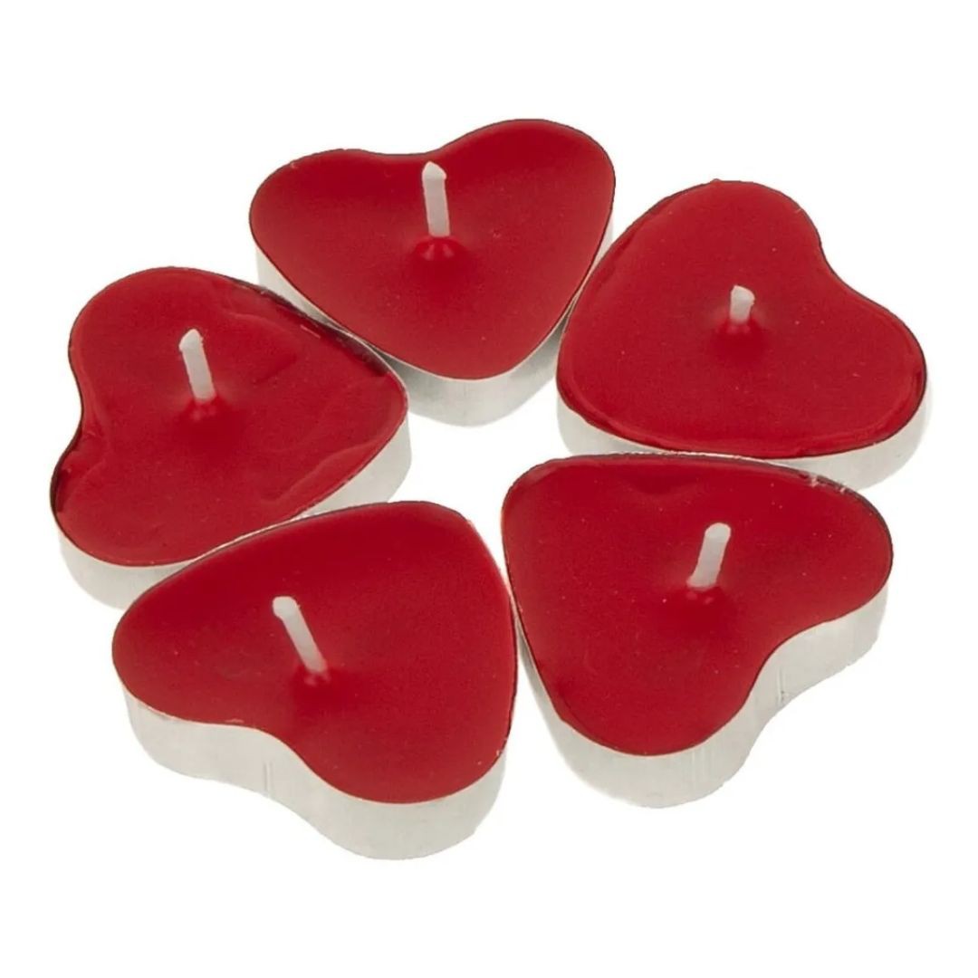 * Embalagem com 10 velas tipo rechaud em formato de coração, feitas em parafina e armazenadas em suporte de alumínio.