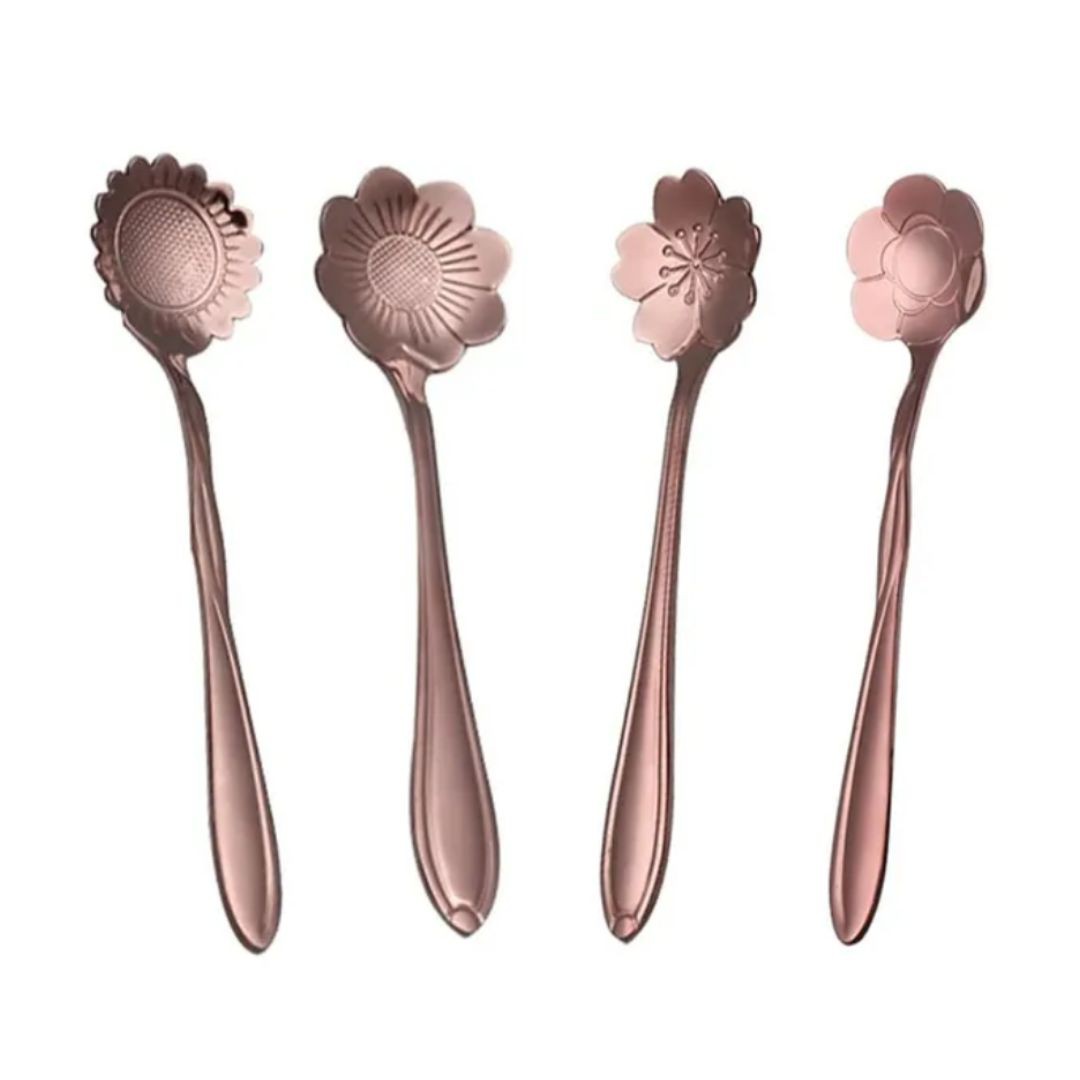 Kit com 4 Colheres de Flor Rose Gold