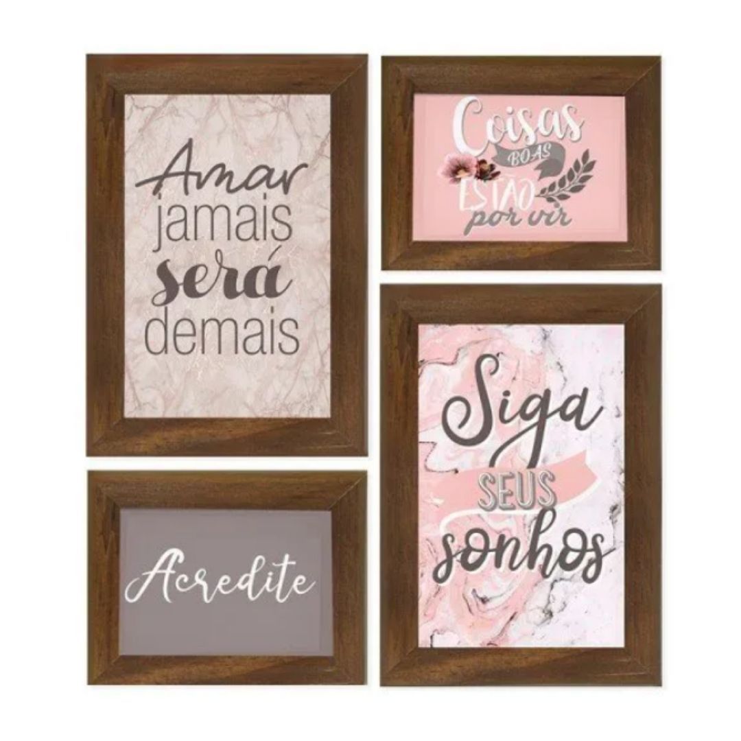 O Kit de 04 quadros com Moldura é perfeito para dar ainda mais vida e elegância aos ambientes da sua casa. O conceito moderno e o alto padrão de acabamento das molduras fazem uma excelente combinação para surpreender alguém especial.