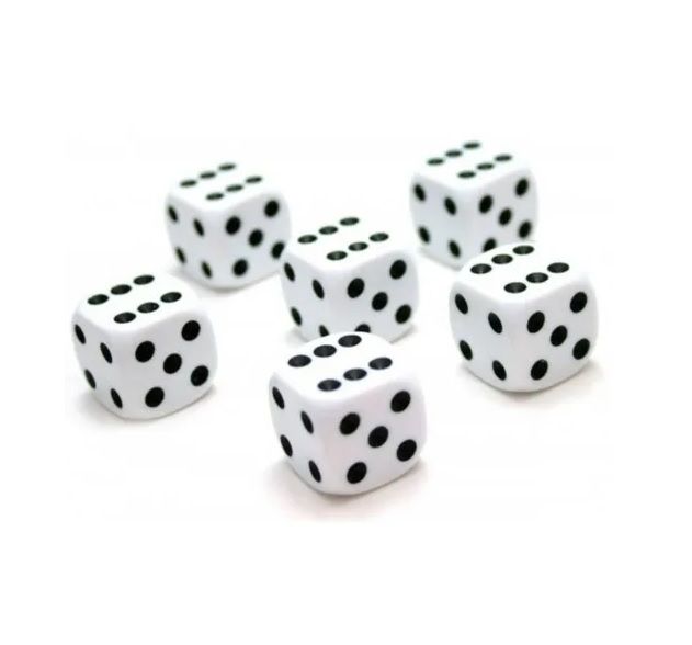 Kit lote 100 dados brancos com preto - 6 faces para jogos de tabuleiros e rpgs
