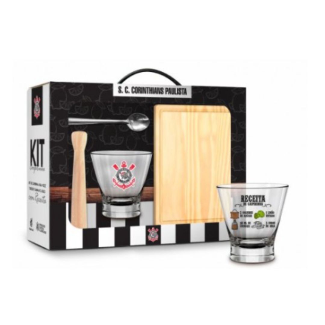 Kit Copo de Caipirinha do Corinthians com Tábua, Socador e Colher