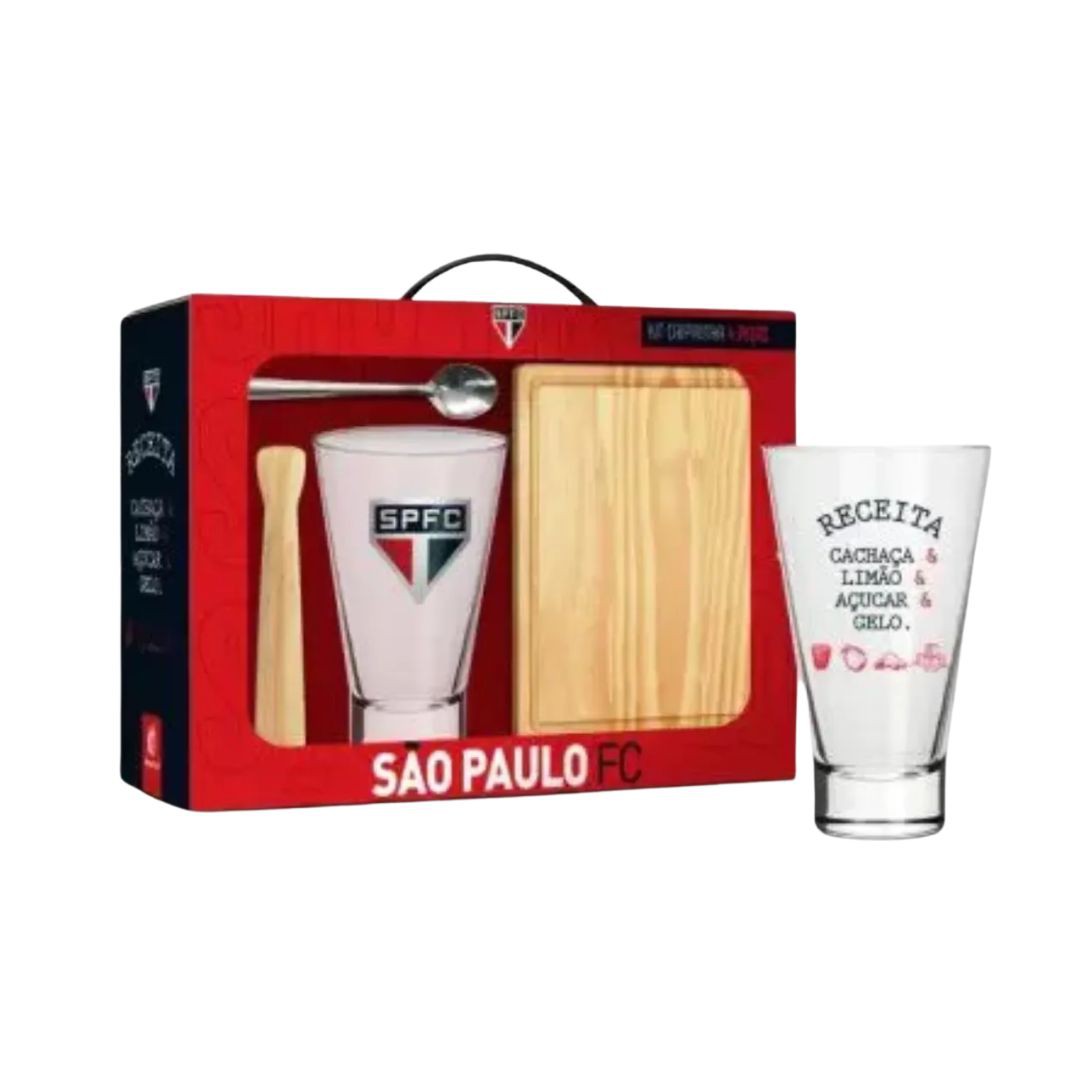 Kit Copo de Caipirinha do São Paulo com Tábua, Socador e Colher