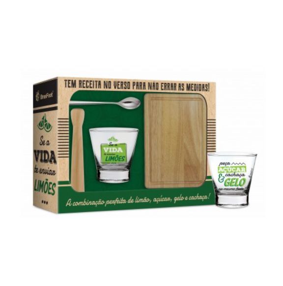 Uma caipirinha que se preze precisa de ingredientes de boa qualidade e um kit de respeito. O KIT CAIPIRINHA é composto por um copo, socador, colher e uma tábua e vai te auxiliar no preparo de uma das bebidas mais famosas do país. Só vai ficar faltando o limão, a cachaça, o açúcar e o gelo pra ficar no ponto e você aproveitar.