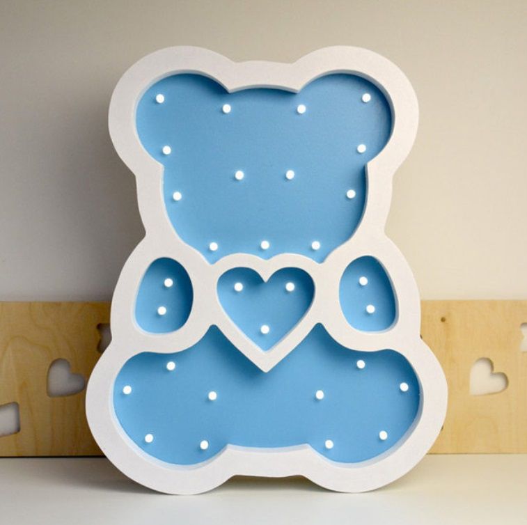 Luminária de Led de Ursinho em madeira