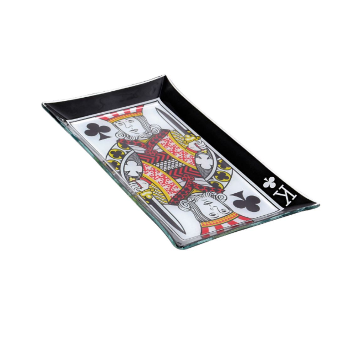 Travessa de vidro com estampa moderna e divertida de Rei de Paus. Ideal para servir deliciosos petiscos enquanto você joga cartas com os amigos. Essas petisqueiras temáticas irão deixar seus momentos com a família e amigos ainda mais saborosos e divertidos.