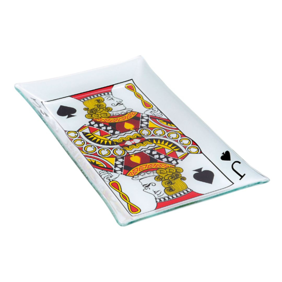 Travessa de vidro com estampa moderna e divertida de Valete de Espadas. Ideal para servir deliciosos petiscos enquanto você joga cartas com os amigos. Essas petisqueiras temáticas irão deixar seus momentos com a família e amigos ainda mais saborosos e divertidos.