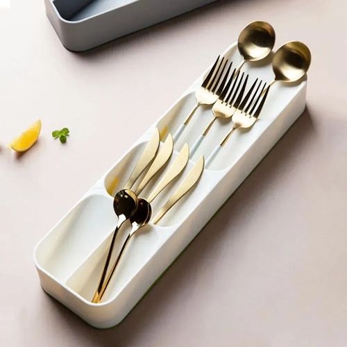 Possui divisórias para que você possa acomodar cada item em seu devido lugar. Uma ótima solução para manter sua gaveta limpa e organizada, tendo seus itens sempre a mão.Também é uma boa opção para usar sobre a pia ou à mesa, possibilitando praticidade para mudar seus talheres de lugar.